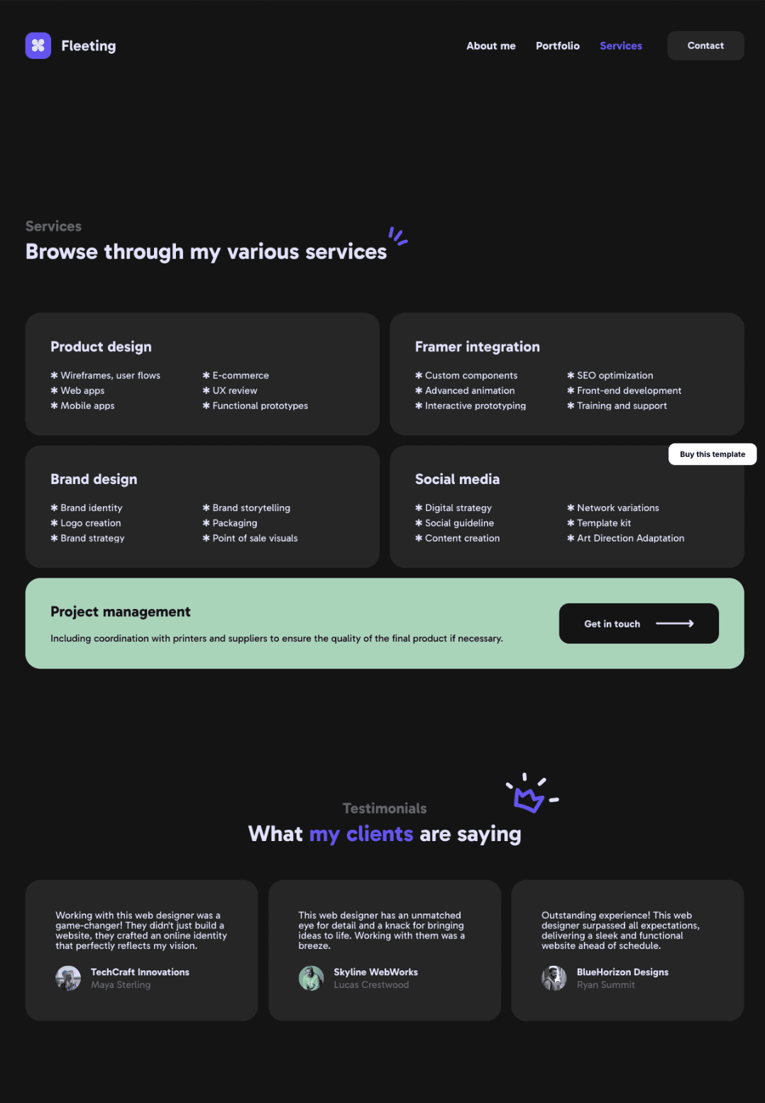 Once your purchase is complete, you’ll receive a link to duplicate the template directly into your Framer account. You can start customizing it right away — no installation needed.